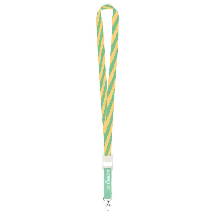 Lanyard in poliestere con moschettone e apri bottiglia, stampa in sublimazione su entrambi i lati. Quantità minima: 100 pezzi
