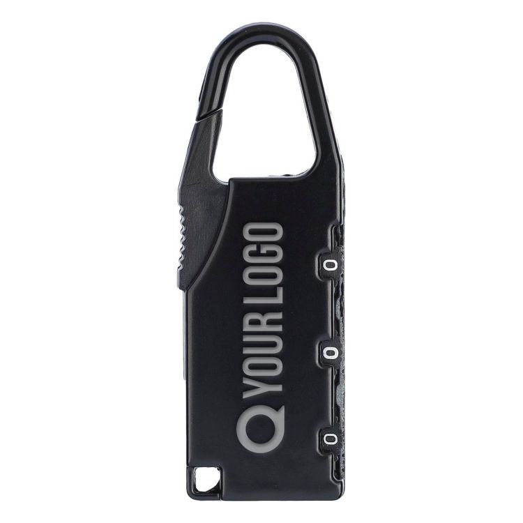 Lucchetto con moschettone numerico in lega di zinco, istruzioni incluse, confezionato singolarmente in una scatola in cartone bianca