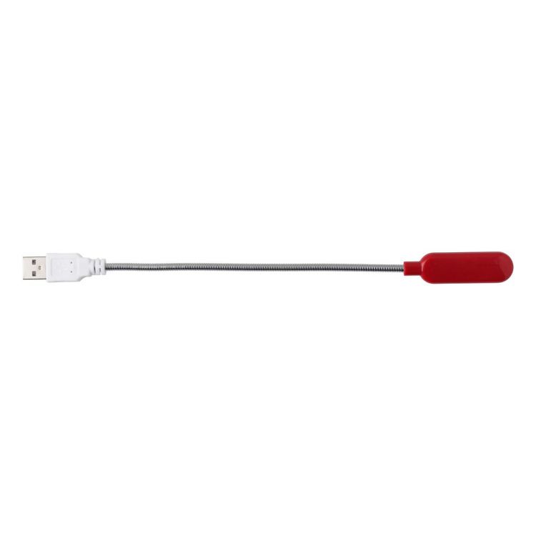 Luce per laptop portatile con braccio flessibile, tre luci LED e connettore USB, confezionato in polybag, in ABS e metallo, in colore rosso