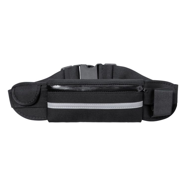 Marsupio in soft shell con uno scomparto chiuso da cerniera, una piccola tasca, portabottiglie elastico, banda riflettente e tracolla regolabile. Solo per uso promozionale, il prodotto non può essere considerato un dispositivo di protezione personale, in colore nero