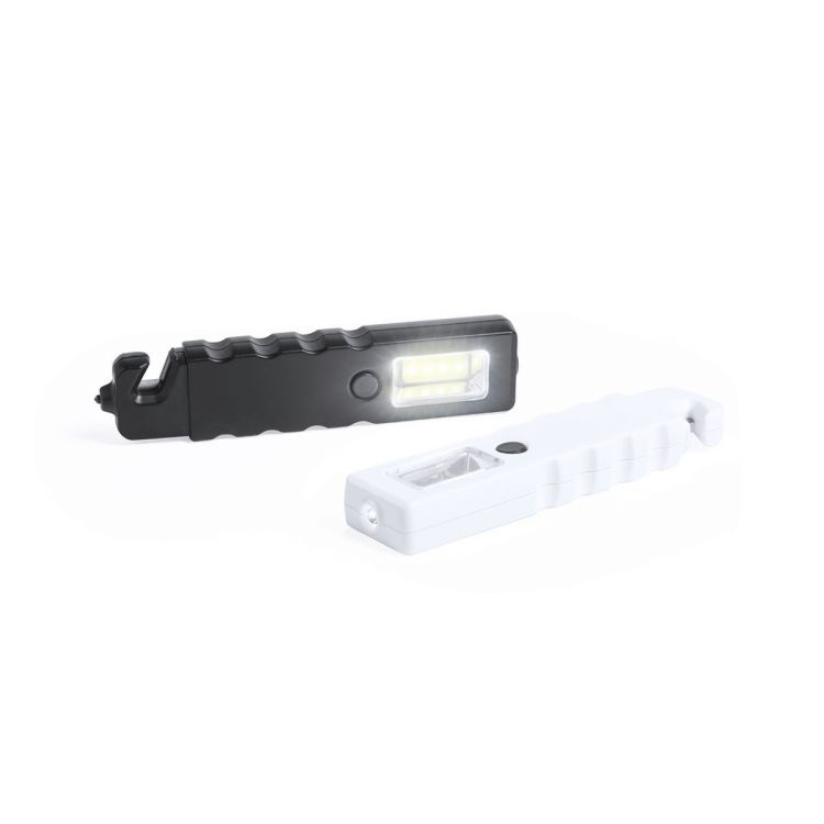 Martello di emergenza 3 in 1 con torcia a LED e 4 luci COB con 3 modalità di illuminazione. Con superficie magnetica e lama tagliacinture.