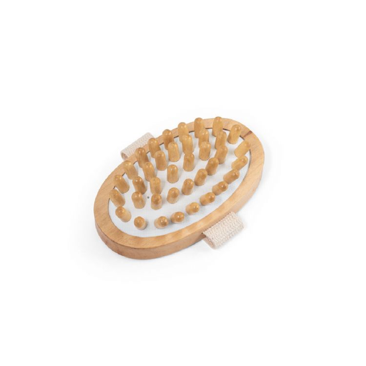 Spazzola da bagno in legno anti-cellulite (250 g/m²), con manico in cotone per massaggiare il corpo più facilmente. Fornita in scatola di carta kraft. Poiché il prodotto è realizzato con materiali naturali, il colore del prodotto e il risultato della stampa possono variare da un prodotto all'altro, in colore naturale