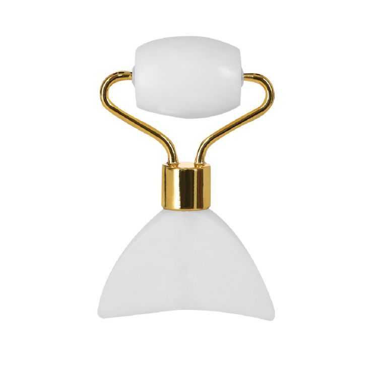 Rullo facciale di alta qualità in pietra di giada bianca. Piacevole massaggiatore per le mani per il viso, con cilindro facciale in pietra lucida morbida e spatola. (colore bianco)