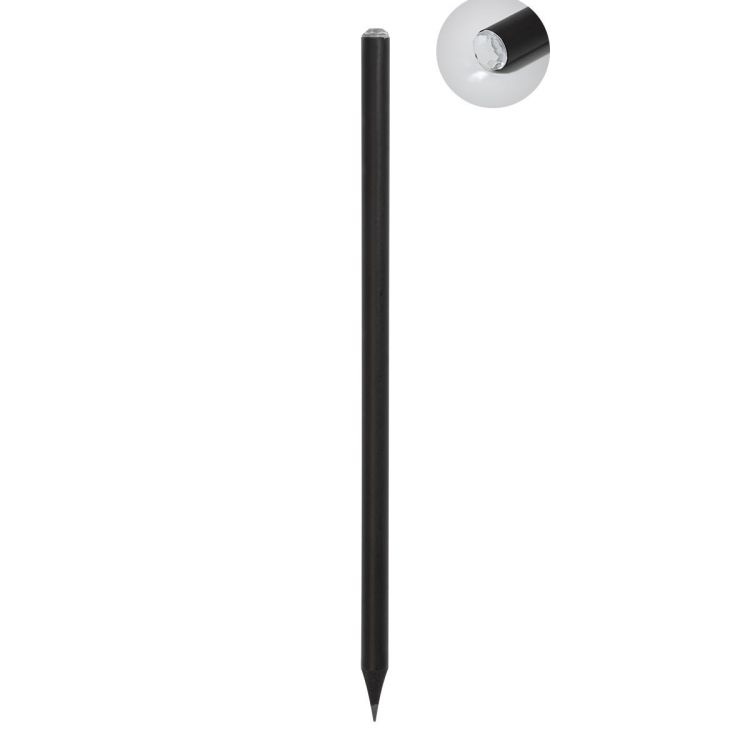 Matita con fusto in legno nero, durezza HB, e decorazione acrilica. Fornita temperata, in colore bianco
