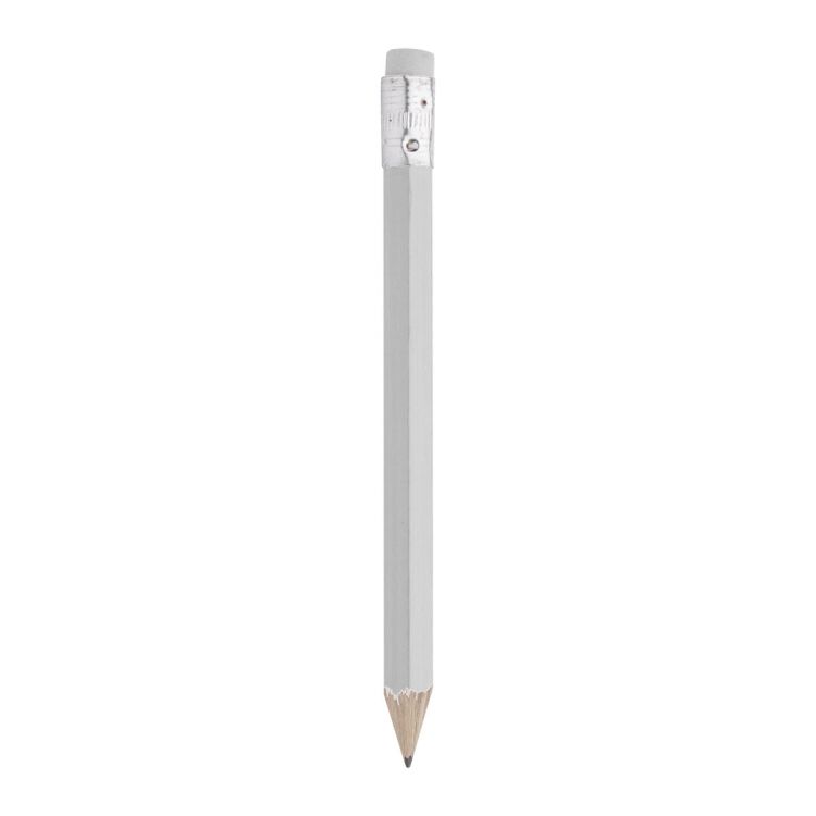 Mini matita in legno con gomma sulla parte superiore. Fornita appuntita.