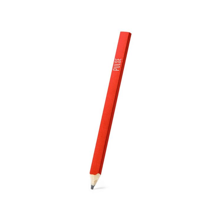 Matita in legno modello da falegname con finitura lucida. Corpo appiattito e disponibile in vari colori. Mina nera e punta non affilata.