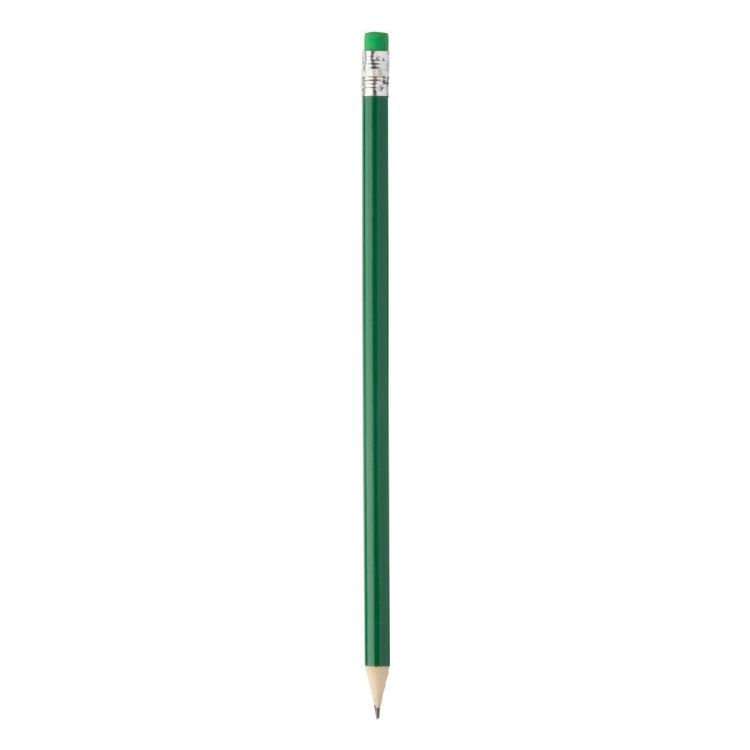 Matita in legno con corpo e gomma colorata in coordinato. Fornita appuntita.