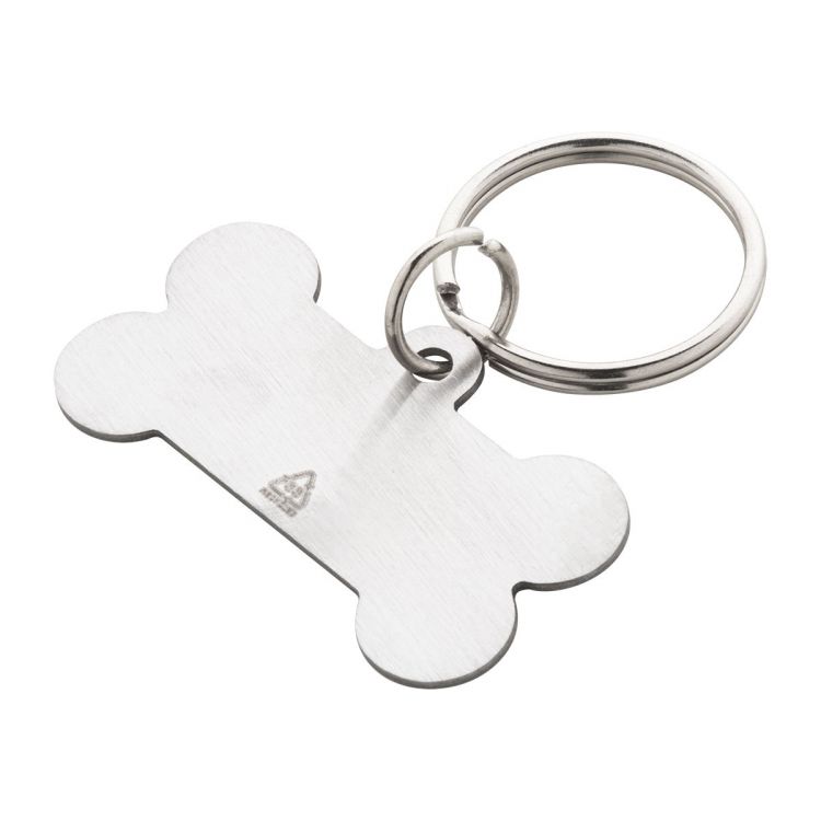 Medaglietta in acciaio riciclato a forma di osso per cani, con portachiavi