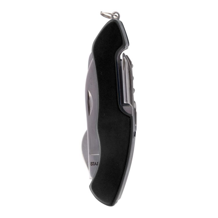 Coltello tascabile in acciaio inossidabile con 12 funzioni e manico in alluminio.