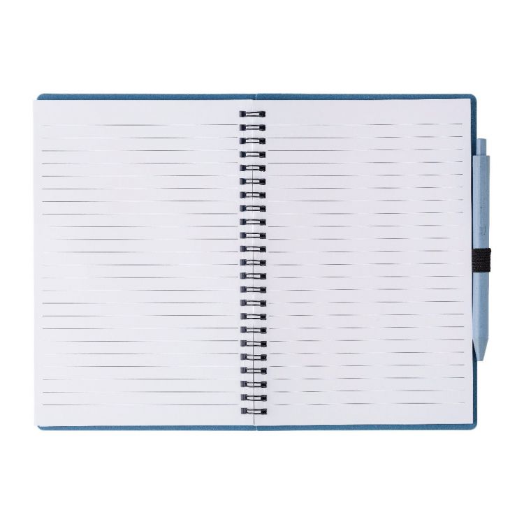 Notebook a spirale formato +/- A5, copertina e penna in fibra di grano e PP, refill blu, 70 fogli a righe