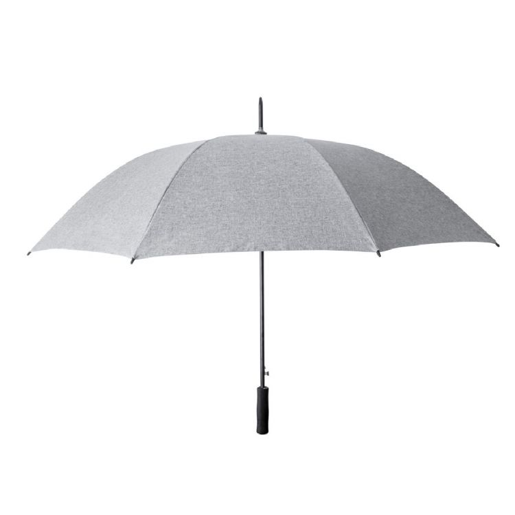 Ombrello di alta qualità con un diametro di 130 cm, realizzato in materiale poliestere 150D e in un'elegante tonalità grigio erica. Apertura automatica, aste in fibra di vetro antivento e chiusura con velcro. Manico dritto in EVA. Presentato in una borsa riciclata. (colore grigio)