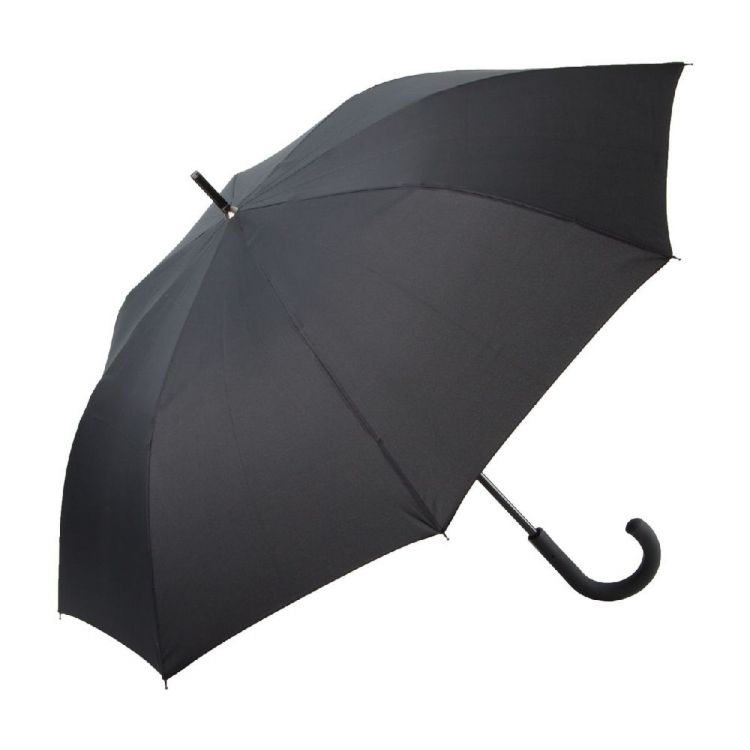 Ombrello automatico antivento con 8 pannelli in Pongee 190T, impugnatura in gomma, struttura in metallo e fibra di vetro e fodera brandizzata. Prodotto a marchio André Philippe, in colore nero