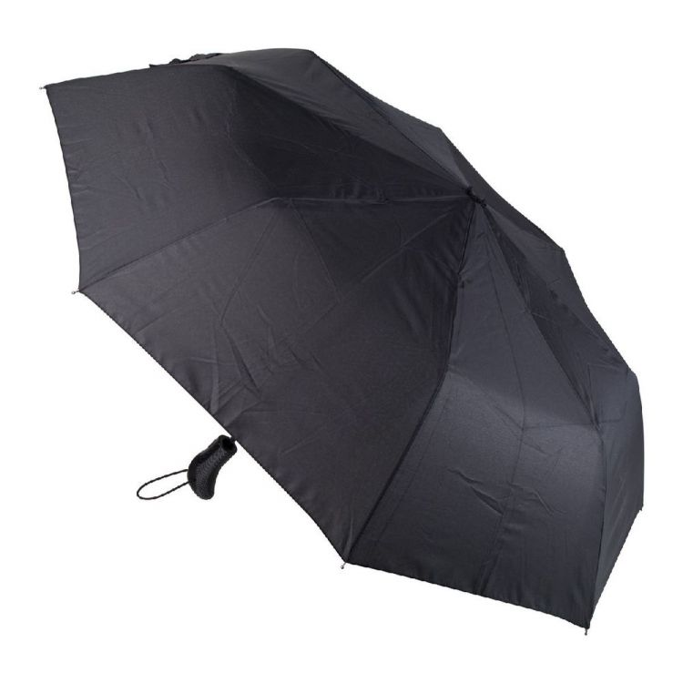 Ombrello pieghevole automatico antivento con 8 pannelli, manico in plastica, asta e stecche in metallo. Materiale: pongee 190T. Fodera brandizzata. Prodotto a marchio André Philippe. Non commercializzato in Germania, in colore nero