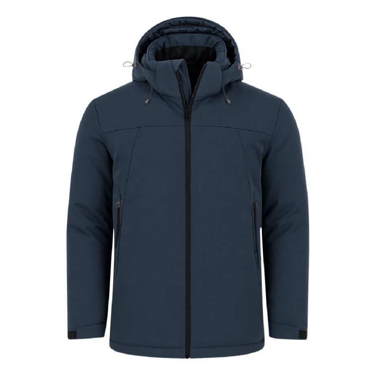 Parka imbottito unisex con cappuccio fisso regolabile. Dotato di chiusura frontale con zip nera e protezione per il mento per maggiore comfort e protezione, due tasche laterali con zip nera e polsini regolabili con velcro.