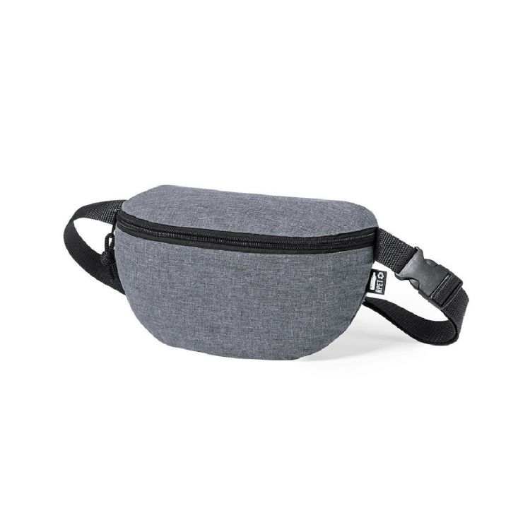 Marsupio della linea Nature in resistente 600D RPET con effetto melange. Realizzato in plastica riciclata per favorire il riutilizzo dei rifiuti plastici e contribuire alla sostenibilità del pianeta. Scomparto principale con chiusura a cerniera e cinturino regolabile con fibbia di chiusura. Ideato per lo sport e il tempo libero, con etichetta RPET all'esterno.