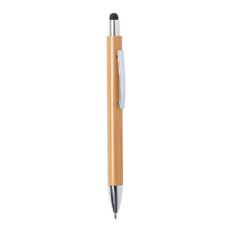 Penna a sfera capacitiva in bambù con clip e punta in metallo. Con refill blu, in colore nero