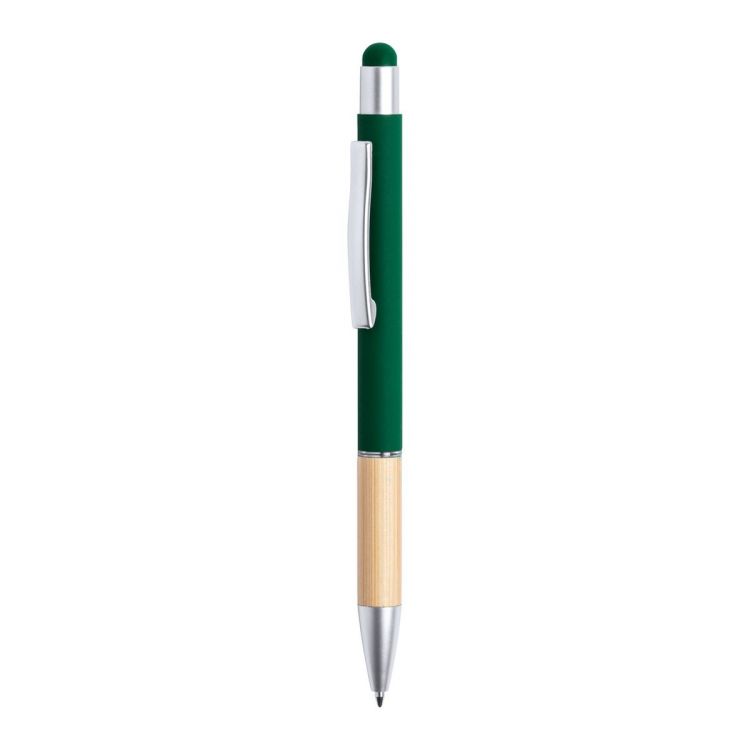 Penna a sfera capacitiva in alluminio con impugnatura in bambù e finitura opaca. Con refill blu.