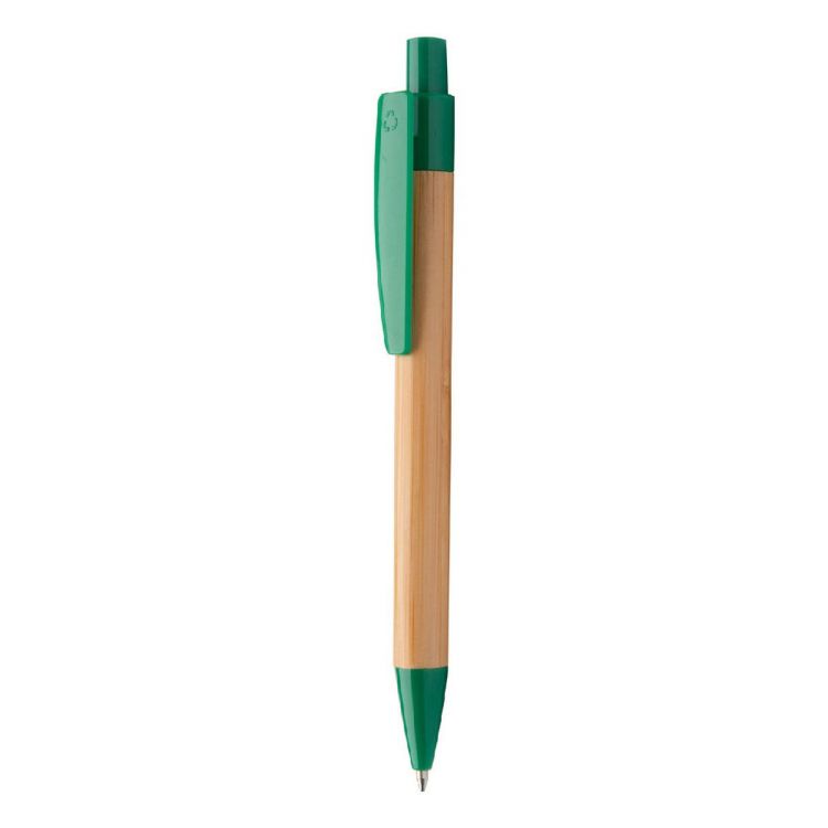 Penna a sfera in bambù con clip e puntale in plastica colorata. Con refill blu.