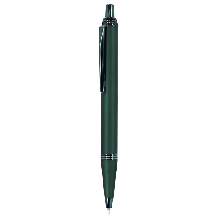 Penna con corpo in alluminio, finitura gommata e dettagli cromati. Meccanismo a pressione, refill jumbo e inchiostro blu.