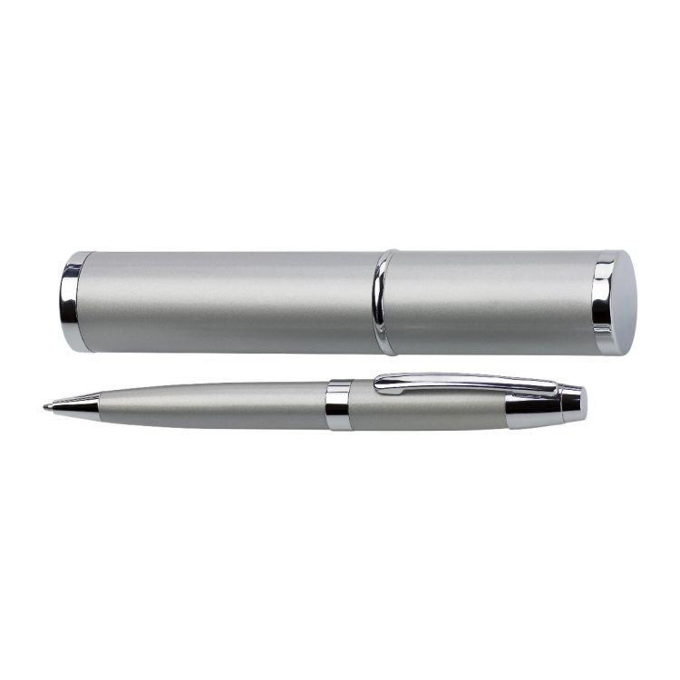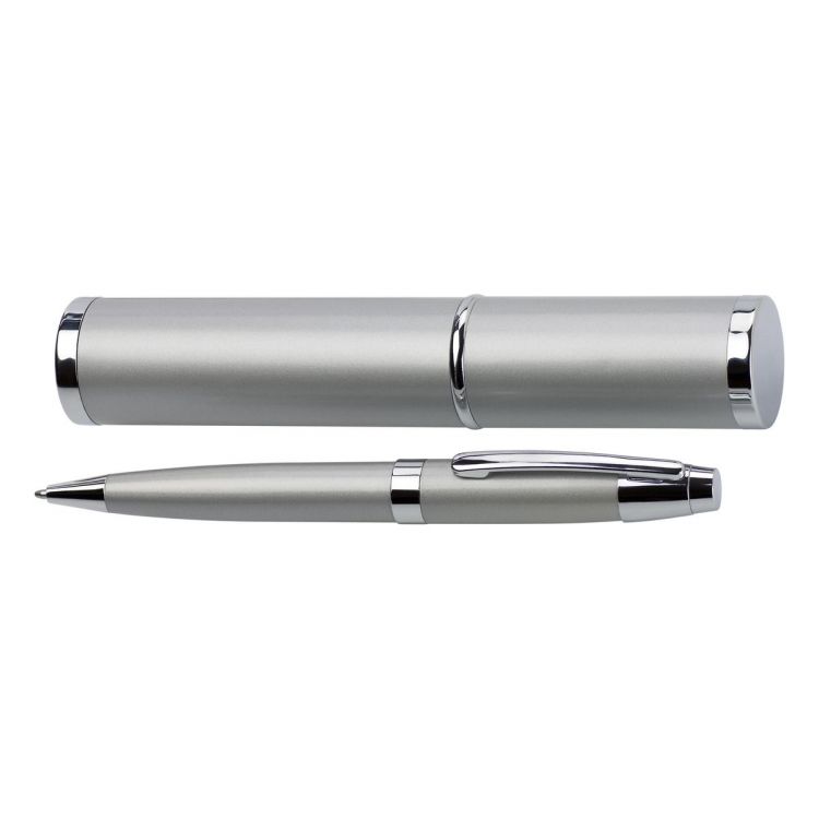 Penna a sfera in metallo, elegante astuccio, refill nero, vendita per multipli d'imballo da 50 pezzi.