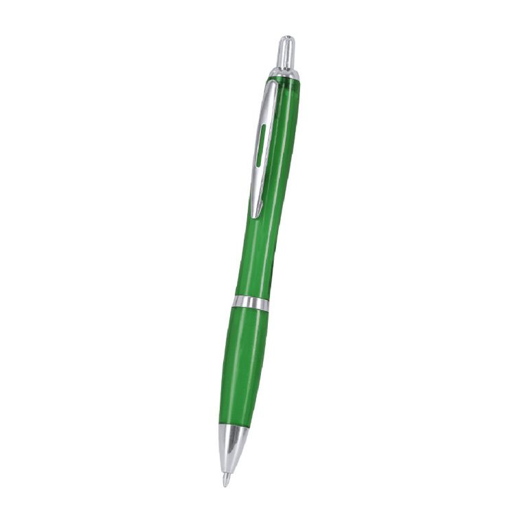 Penna a meccanismo a pulsante in RPET resistente. Realizzato con un design elegante e accessori d'argento. Con pulsante, clip e punta in combinazione. Con inchiostro blu.