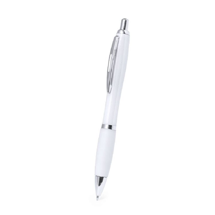 Penna a meccanismo a pulsante in ABS resistente. Clip, spintore e punta in argento. Con inchiostro nero.