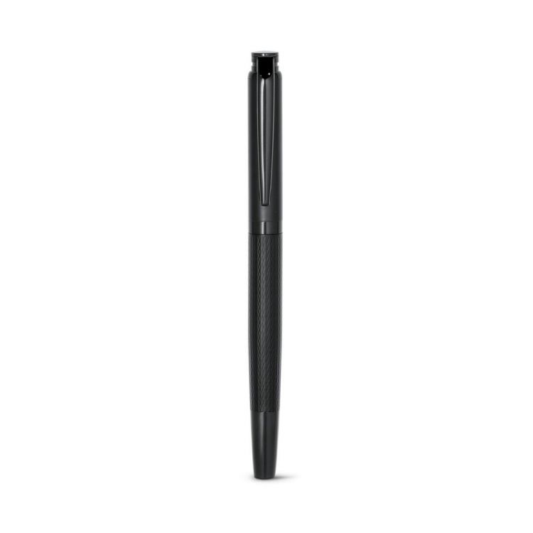 Rullo in metallo con morbida goffratura sul corpo. Inchiostro nero. Fornito in una confezione regalo imbottita, in colore nero