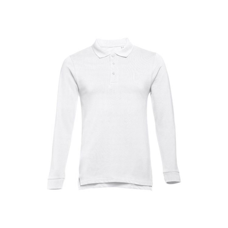Polo da uomo a maniche lunghe in tessuto piqué, 100% cotone cardato (210 g/m²).Polo con taglio regolare con girocollo e maniche a costine, girocollo rinforzato con nastro e trama piqué. Abbottonatura rinforzata con 3 bottoni in tinta (bottone di riserva cucito all'interno). Cucitura ribattuta sul davanti con aperture laterali nella parte inferiore, in colore bianco, taglia 3XL