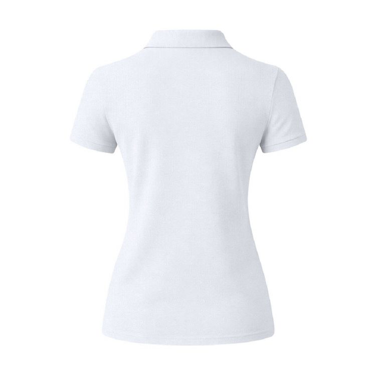 Polo a maniche corte, vestibilità femminile, 180 g/m2. Fatta al 100% cotone piqué. Taruga a due bottoni nello stesso tono con finitura opaca. Con copricutura rinforzata all'interno del collo. Rifiniture a coste su maniche e colletto. Cuciture laterali con aperture in fondo.