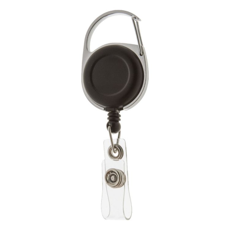 Porta pass telescopico in metallo con moschettone, in colore nero