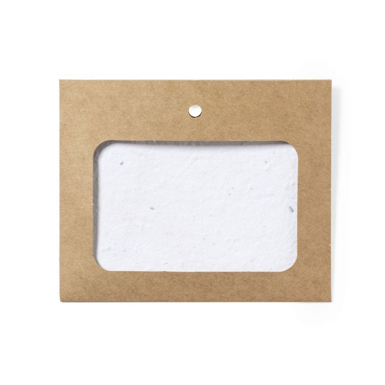 Badge per nome in cartone riciclato. Include carta prodotta con semi di fiori selvatici, trasformandola in carta da piantare alla fine della sua vita utile. Fiori selvatici in colori assortiti, con istruzioni per piantarla all'interno ed etichetta Made in Europe. (colore naturale)