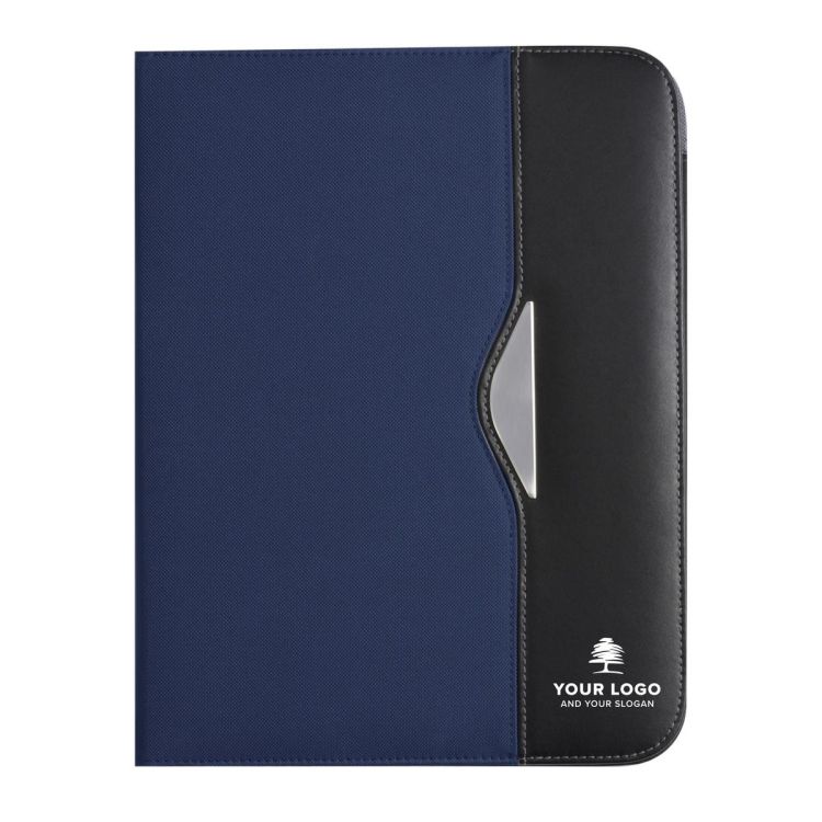 Portablocco formato +/- A4, scomparto grande sul lato sinistro, vano portabiglietti, passante elasticizzato per penna targhetta in metallo, blocco incluso, in nylon 600 D