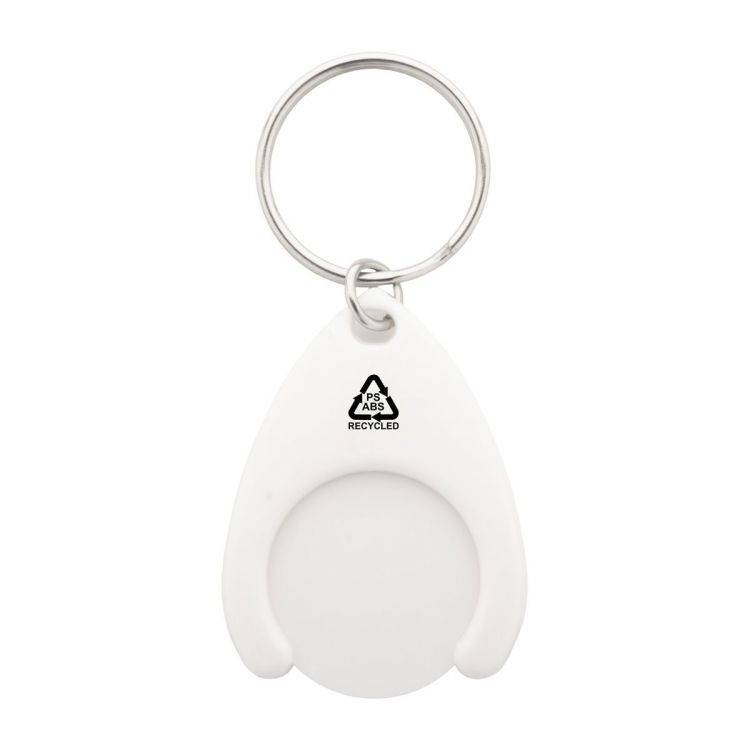 Portachiavi in plastica ABS e PS riciclata con moneta per il carrello della spesa ed anello in metallo. Dimensione moneta: ø24×2 mm.