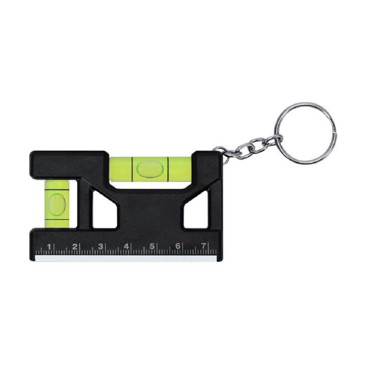 Portachiavi multifunzione a livello magnetico in base in ABS. Con il righello delle scaglie in centimetri. Livellato in posizione orizzontale e verticale. Con anello in metallo cromato. Compatti di dimensioni. (colore nero)