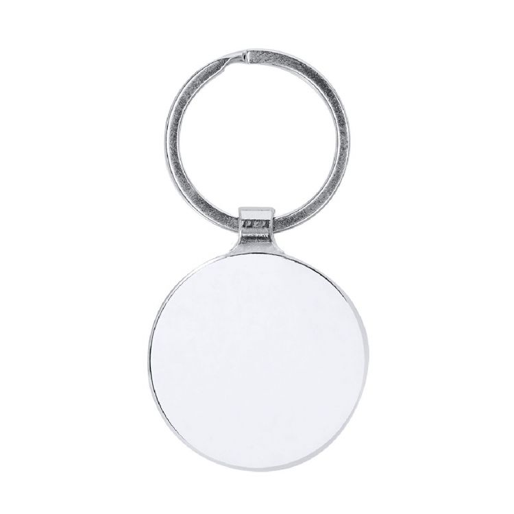 Portachiavi con design a piastra metallica con anello metallico. La piastra include una superficie ideale per la sublimazione.)
