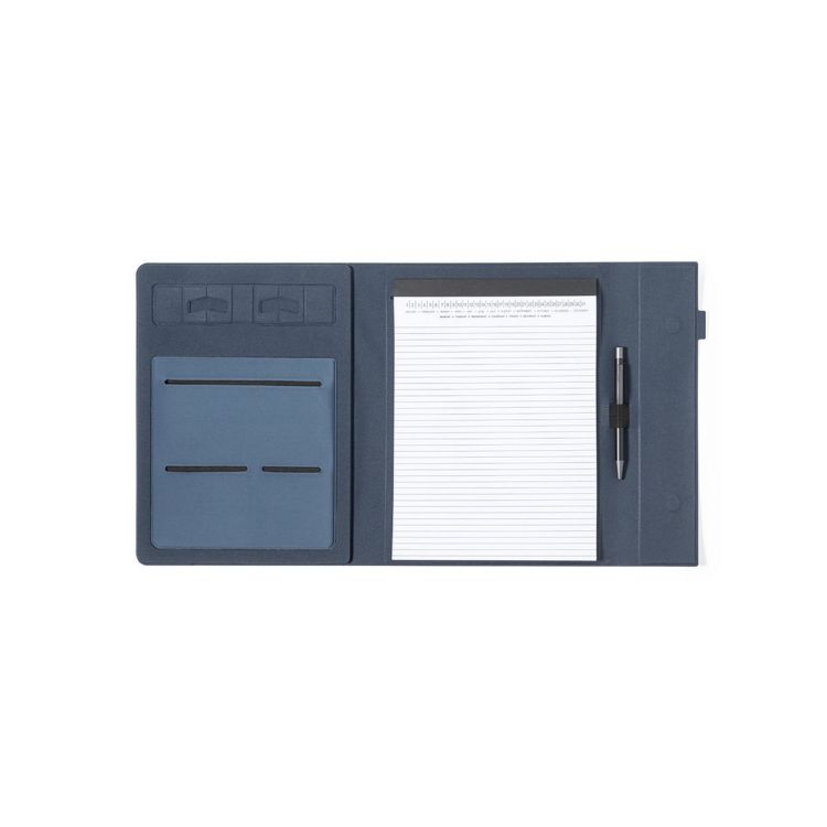 Cartella realizzata in poliestere 600D RPET, ricavato da plastica riciclata, per promuovere il riutilizzo dei rifiuti plastici e contribuire alla sostenibilità del pianeta. Con chiusura magnetica e etichetta RPET. Interno con porta smartphone e numerosi scomparti per carte, tra cui un portapenne e un blocco con 20 fogli di layout a righe. Presentata in unattraente scatola dal design individuale e disponibile in diversi colori.