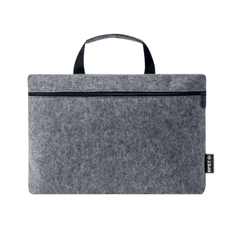 Portadocumenti in resistente feltro RPET effetto melange. Scomparto principale con cerniera per laptop fino a 15 e piccola tasca interna. Con robusti manici abbinati con dettagli neri. Logo RPET sull'etichetta esterna. Il feltro RPET è il risultato dell'unione del processo di riciclo delle materie plastiche con l'antica tecnica di produzione del feltro, dando vita a un materiale di eco-tendenza che, oltre a essere di origine riciclata, diventa anche riciclabile. (colore grigio)