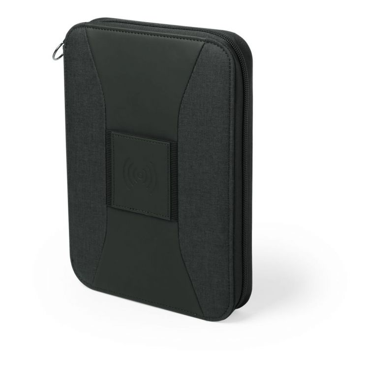 Portaoggetti completo per power bank, in una combinazione di materiali in poliestere 300D e PU. Caricatore wireless integrato nel coperchio, con supporto per smartphone. Include una batteria ausiliaria da 4.000 mAh con capacità di ricarica integrata. Dal design sobrio e con chiusura a zip, include un block notes da 64 fogli con layout a righe singole, un portapenne e un portacarte. Uscita USB, con cavo micro USB incluso e presentato in un'elegante scatola nera. Le capacità indicate su tutti i nostri power bank sono reali; tutti incorporano batterie di grado A, non riciclate, con una durata di almeno 500 cicli di carica e conformi alla normativa CE. Inoltre, sono prodotti secondo gli standard RoHS e in conformità con i seguenti requisiti di sicurezza: Sistema di protezione da sovraccarico del power bank. Sistema di protezione dalla scarica completa per una maggiore durata del power bank. Sistema di blocco per prevenire i cortocircuiti. (colore grigio)