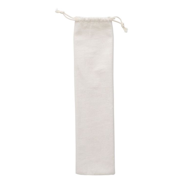 Posate da insalata in bambù, fori all’estremità del manico, confezionati in sacchetto di cotone con chiusura a coulisse, in colore marrone