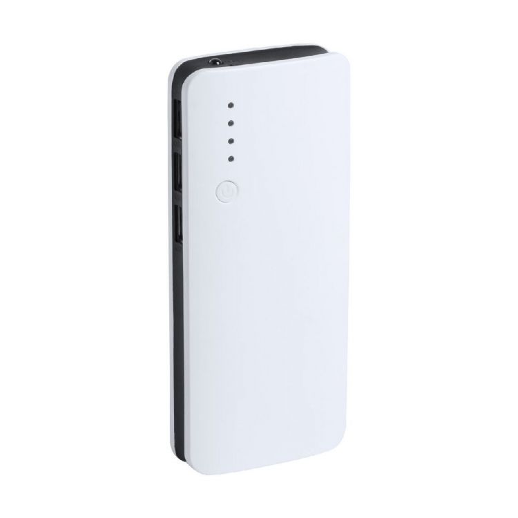 Power bank USB in plastica con 3 porte di ricarica e batteria da 10000 mAh. Senza cavo di ricarica.