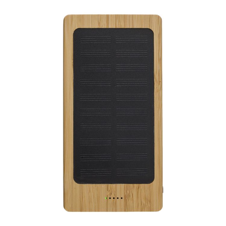 Power Bank solare in bambù, 8.000 mAh, input DC 5V/2A, output DC 5V/2A, include 4 indicatori LED, due porte USB e una porta micro USB, adatto per la maggior parte dei device in commercio, in colore naturale