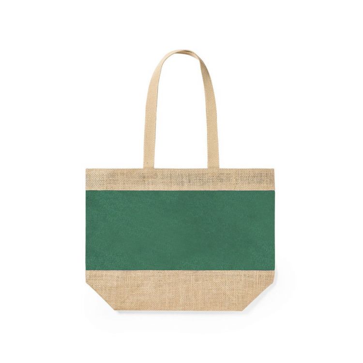 Borsa prodotta con una robusta combinazione di juta laminata e cotone laminato, con manici in cotone naturale. Finitura cucita, con lunghe maniglie rinforzate e disponibile in una vasta gamma di colori. Resistenza fino a 10 kg di peso.