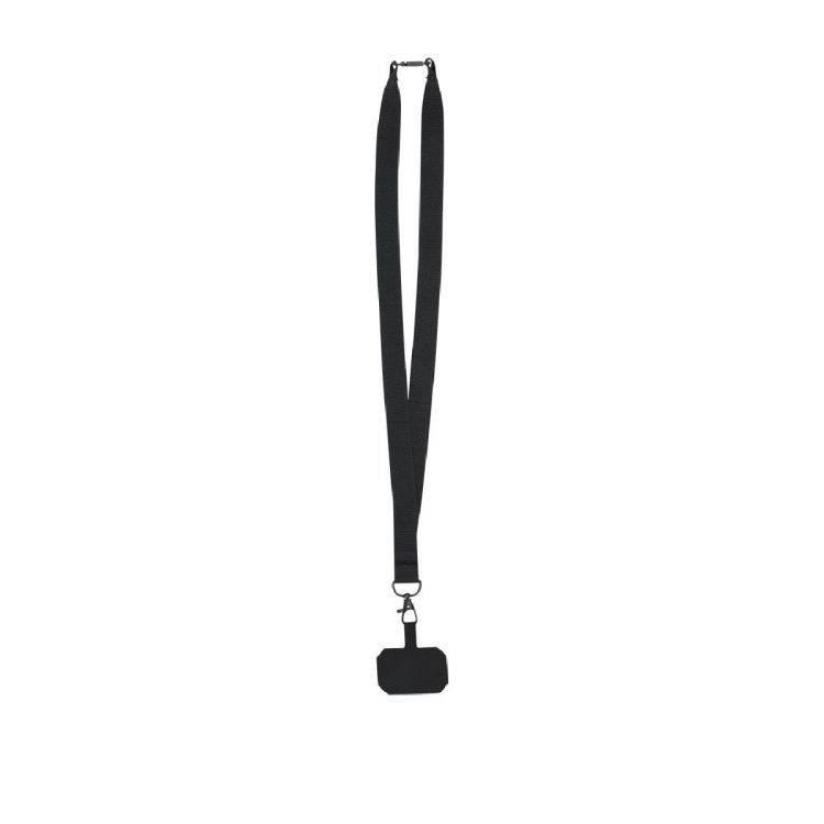 Lanyard originale in morbido poliestere, adattabile tramite l'accessorio di trasporto da posizionare tra la custodia e lo smartphone. Cintura di trasporto coordinata, moschettone girevole in metallo nero e dotato di accessorio di sicurezza per il collo. (colore nero)