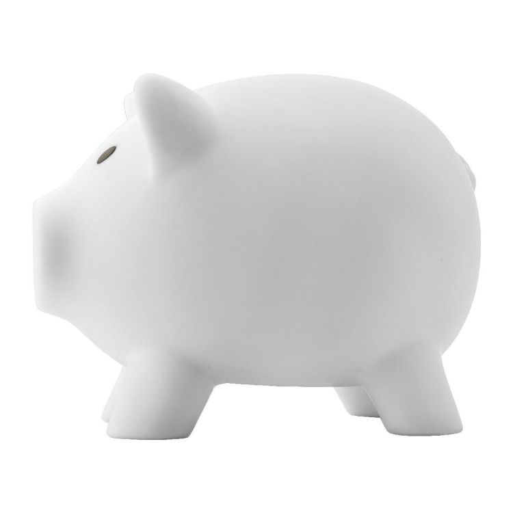Salvadanaio con tappo sul fondo, in PVC, in colore bianco