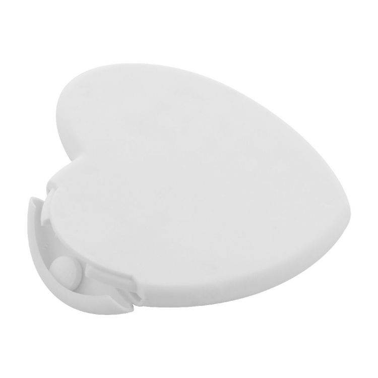 Contenitore di mentine in plastica a forma di cuore con circa 8 grammi di caramelle al mentolo senza zucchero.