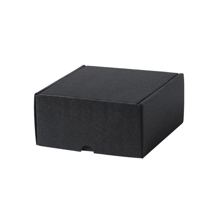 Scatola di presentazione di dimensioni S, realizzata in cartone ondulato di colore nero. In linea con la tendenza di mercato verso la sostenibilità totale del regalo, offrendo soluzioni per aiutare il miglioramento e la conservazione del nostro pianeta. (colore nero)