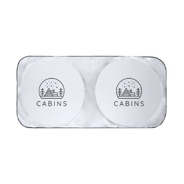 Originale parasole pieghevole in robusto poliestere argentato. Leggero, 150 x 70 cm, adatto per auto e furgoni. Bordi rinforzati, con sistema di piegatura facile e custodia singola abbinata. Inviato steso per facilitare la stampa, con custodia a parte. (colore naturale)