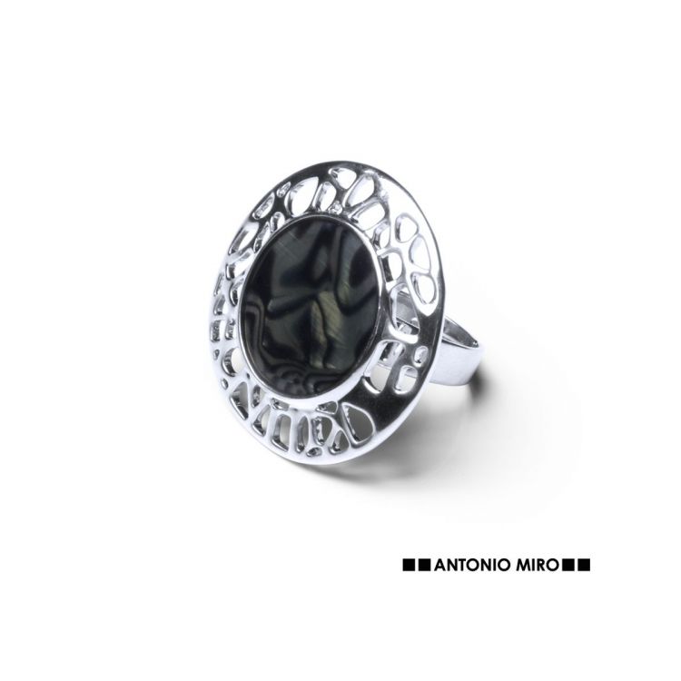 Anello regolabile by Antonio Miró in metallo con inserti in resina. Presentato in una pouch in similpelle con logo del marchio. (colore naturale)