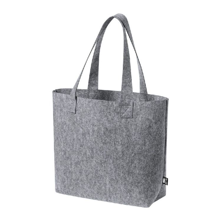Borsa per la spesa in feltro RPET con manici lunghi, soffietto sul fondo ed etichetta RPET, in colore grigio