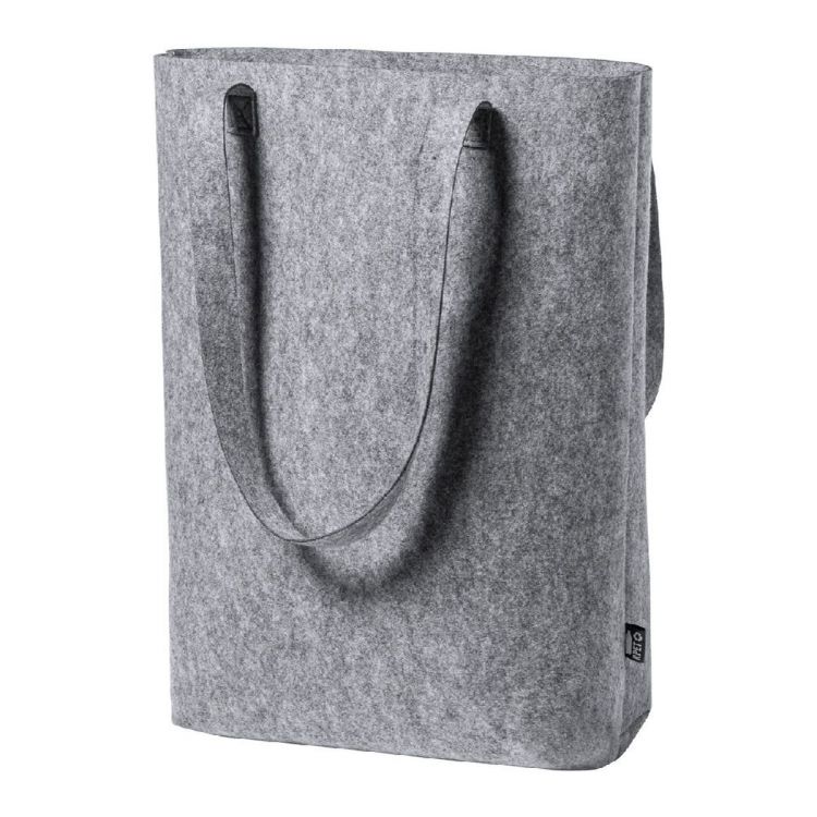 Shopper in feltro RPET con manici extra lunghi, soffietto sul fondo ed etichetta RPET, in colore grigio